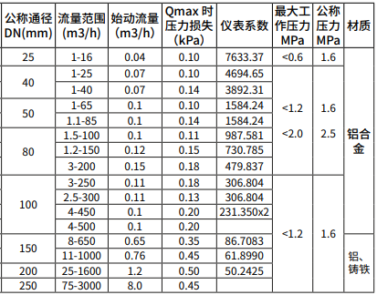 1. 低始動流量:根據不同規格,最低始動流量可達到0.04m3/h;