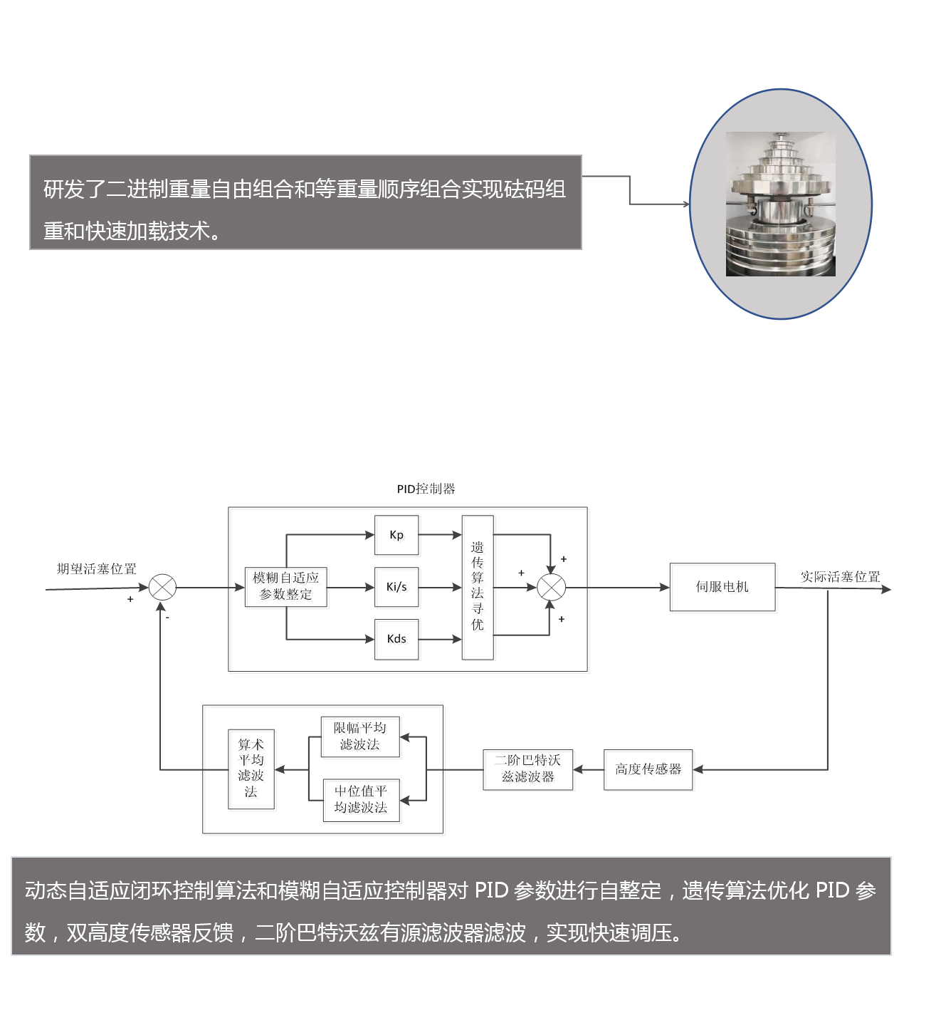 ①整數(shù)壓力點(diǎn)砝碼質(zhì)量全自動(dòng)加載功能