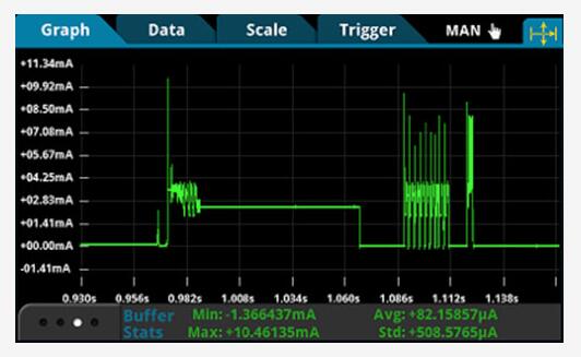 DMM7510 的數(shù)字化器可以測(cè)量所有 IoT 設(shè)備操作狀態(tài)下的漏電流。結(jié)合利用高分辨率、高速數(shù)字化器的靈敏快速電流測(cè)量,捕獲 μA 睡眠模式電流和高達(dá) 1A 的傳輸電流。