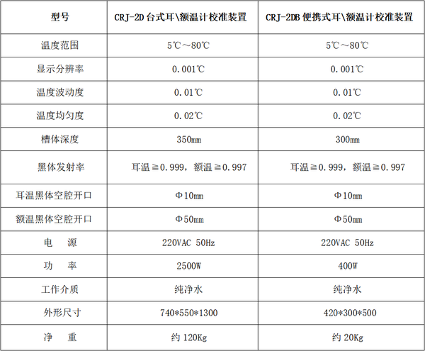 CRJ系列耳/額溫計校準裝置,主要用于校準紅外耳溫計、紅外額溫計等非接觸式紅外人體測溫儀器。本產品是一種高精度自控式數顯溫度校準裝置,它具有溫度穩定性好、溫場均勻、控溫精度高、噪音低、可靠性好、壽命長等特點。本裝置采用PID溫度調節,實現溫度自動控制,結構緊湊,操作方便,讀數直觀。 本產品特適用于非接觸式紅外人體測溫儀器生產廠家,計量單位以及醫療衛生部門等對非接觸式紅外人體測溫儀校準使用。本產品所配高精度恒溫源性能指標同時符合玻璃體溫計檢定規程、醫用電子體溫計檢定規程,選配相應附件后可適用于玻璃體溫計、醫用電子體溫計的檢定。