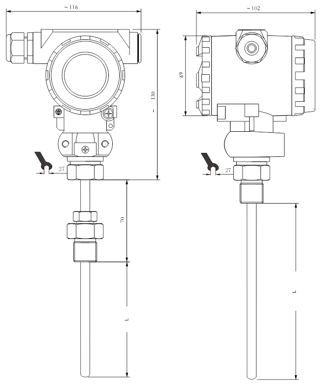 | 代號(hào) | 測(cè)溫桿長(zhǎng)度 |