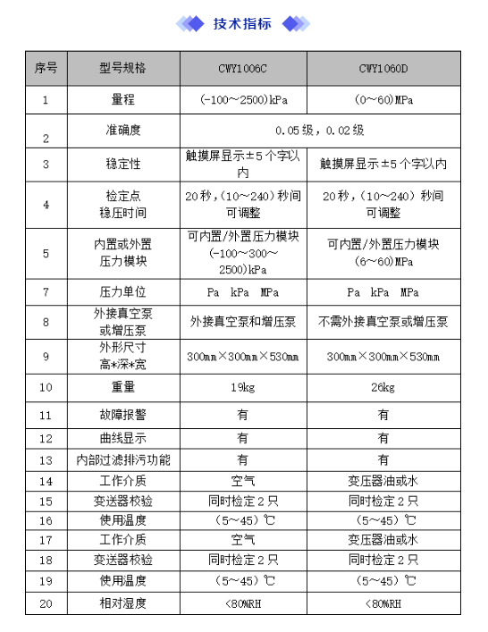 CWY型全自動(dòng)壓力校驗(yàn)臺(tái)是我公司推出的新一代高精度、高穩(wěn)定、兼具工業(yè)4.0數(shù)字化5G+全自動(dòng)智能化壓力校驗(yàn)臺(tái)。