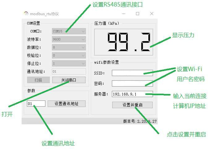 設(shè)置成功后在右上方的壓力顯示框內(nèi)可以輸出壓力值,單位Kpa