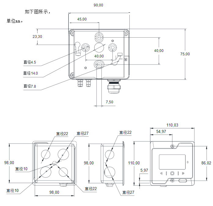 l 字高:壓力,10mm, 單位3mm, 溫度和濕度,3mm。