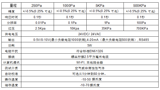 l 壓力范圍從+/-25Pa 到+/-500KPa 。
