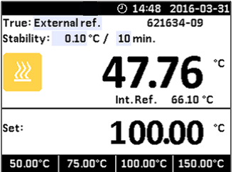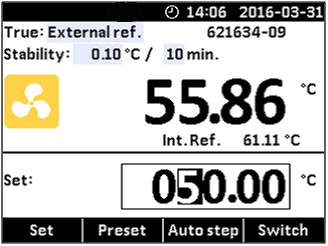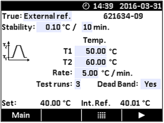 用外接標準鉑電阻的CTC可以在兩種模式下運行 “External ref ”(外接標準)模式代表外接標準鉑電阻讀數作為標準值。 “Set follows True”(外部控溫) 模式下外接標準鉑電阻有兩個用途:測量溫度作為標準值,同時控制CTC干體爐達到設定溫度。