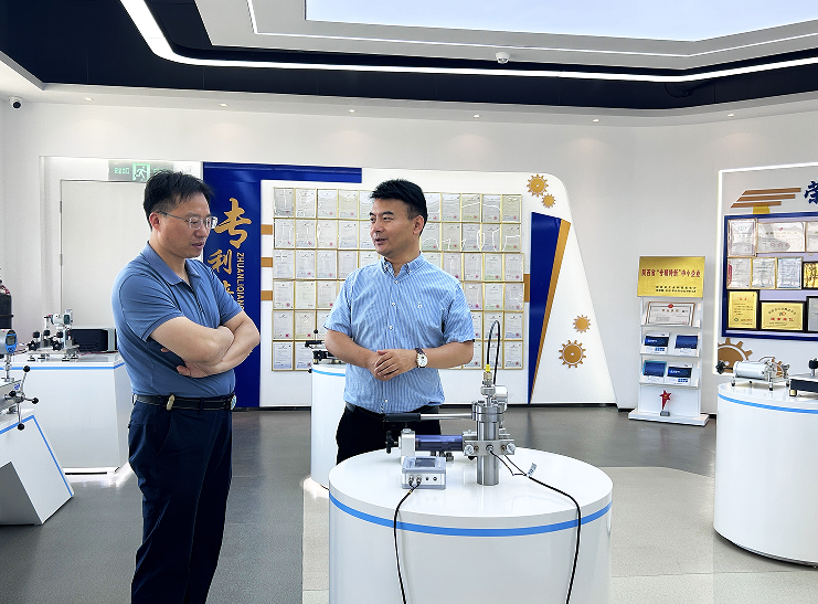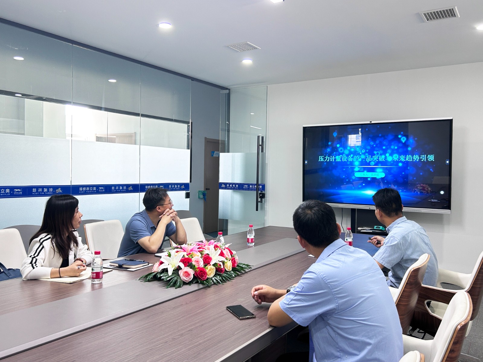 參觀結(jié)束后,雙方舉辦座談會(huì),創(chuàng)威針對近年來在壓力測試技術(shù)領(lǐng)域的創(chuàng)新成果進(jìn)行了重點(diǎn)展示,包括非介入式在線壓力校準(zhǔn)技術(shù)、高靜壓差壓活塞式壓力計(jì)、高壓氣體活塞式壓力計(jì)、便攜式壓力儀表自動(dòng)校準(zhǔn)系統(tǒng)等;朱教授對公司的技術(shù)實(shí)力和創(chuàng)新能力給予了高度評價(jià),并針對公司產(chǎn)品的技術(shù)細(xì)節(jié)和應(yīng)用場景提出了許多建設(shè)性的意見和建議。