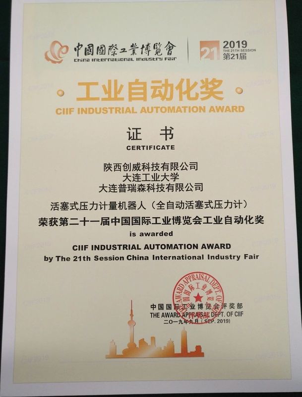 創威產品壓力計量機器人(高精度全自動活塞式壓力計)在2600多家中外展商中脫穎而出,與國際國內著名品牌施耐德、費斯托、和利時、川儀股份這些大腕一起領獎,獲得此項大獎(僅有10家單位獲獎)是客戶對創威產品的認可,也是創威公司不斷創新的動力,更需繼續加油,為我國高端熱工壓力計量設備,貢獻自己的力量。繼續努力不斷提升產品品質,打造基準級壓力計量設備國產精品,滿足不斷增長的客戶使用要求。