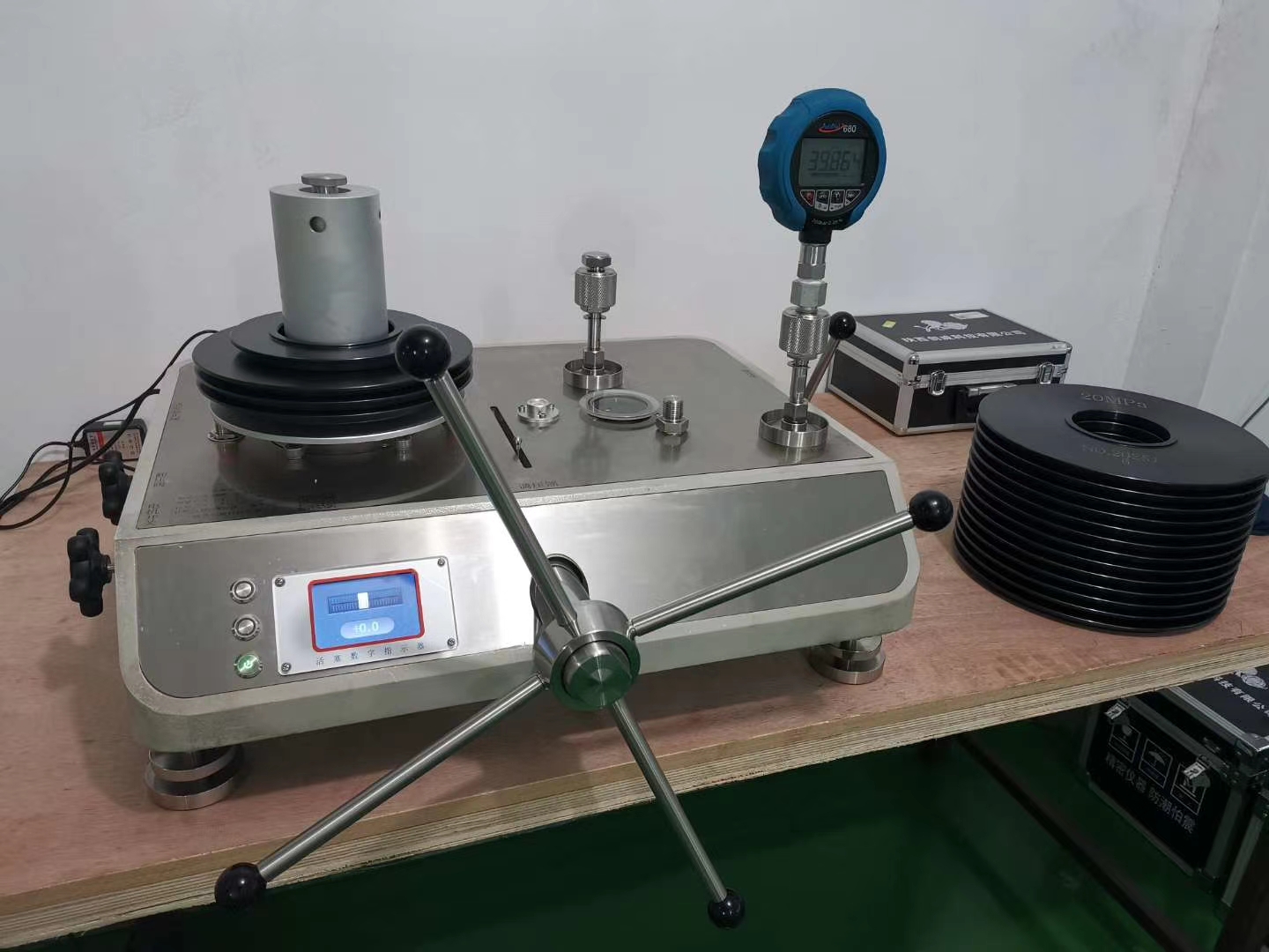 近日,范圍(5-300)MPa高壓活塞式壓力計出貨杭州某單位,人員進行現場調試。